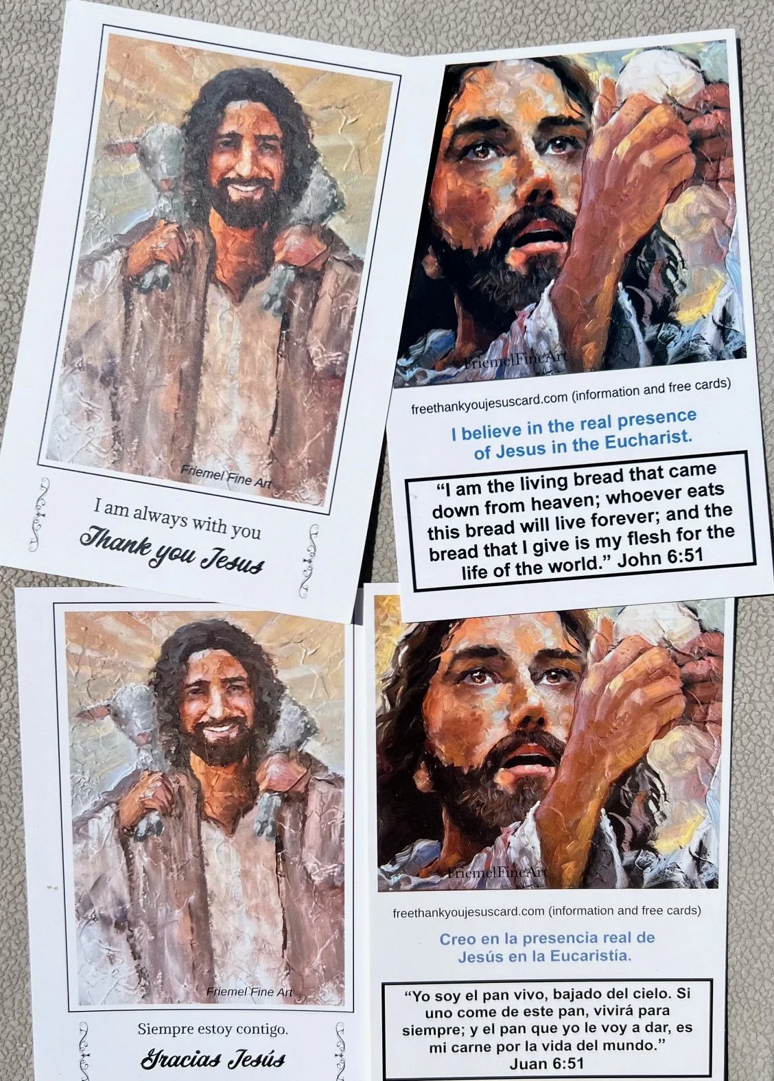 The Thank You Jesus cards are a gift from my heart. Always free including shipping. It’s not complicated.